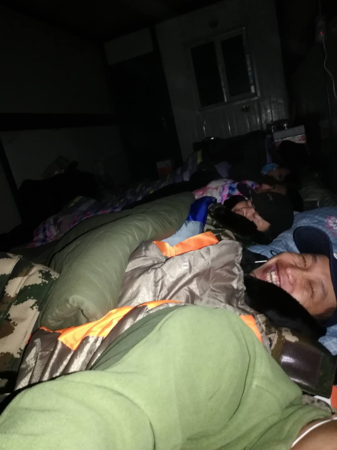 后來終于解決了用車問題,睡覺的問題接踵而至。如果說,在內(nèi)地縱使住宿條件再差,可總能讓你睡覺至少有個屋子、有張床。但是對于新疆團隊來說,睡覺的屋子換成了集裝箱,睡覺的床換成了睡袋,室外零下20多度的氣溫,箱內(nèi)還是零下20多度。大家就擠在一起,相互取暖,和衣而睡。